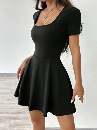• Kadın kısa kollu kare yaka short detaylı cepli dalgıç elbise